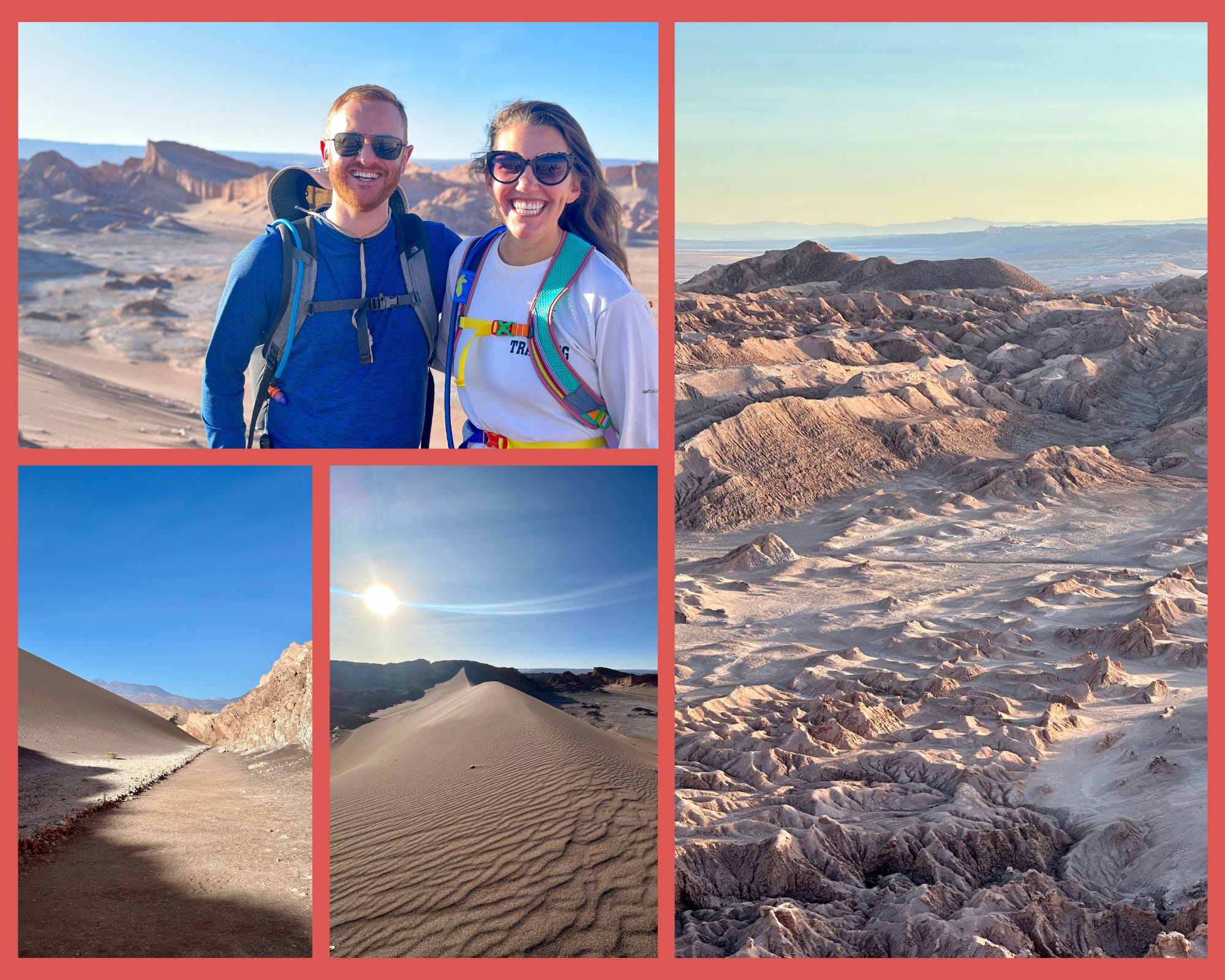 We packed the following days with tours around the area. First, we visited Valle de la Luna, or Valley of the Moon, characterized by its sweeping sand dunes, ragged rock formations, and salt sculptures. While the desert's profound aridity makes plant and animal life virtually nonexistent, we did find one lone bush that braved to grow there. In fact, the Atacama Desert is such a desolate place that NASA uses it to test tools and techniques, including prototype Rovers, to try to detect life in the desert—the idea being that if you can’t find life in Atacama, why send the equipment to Mars?