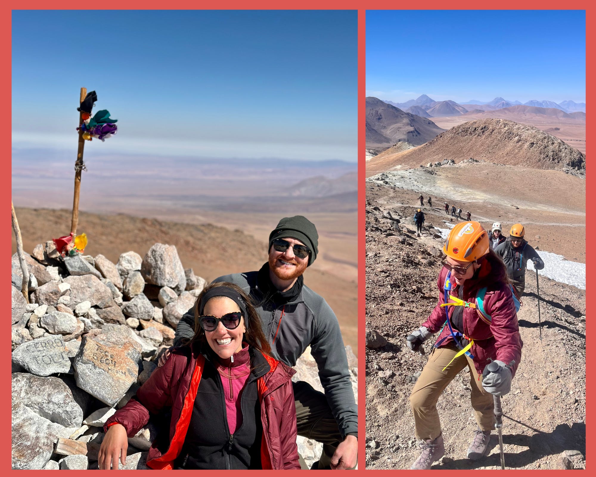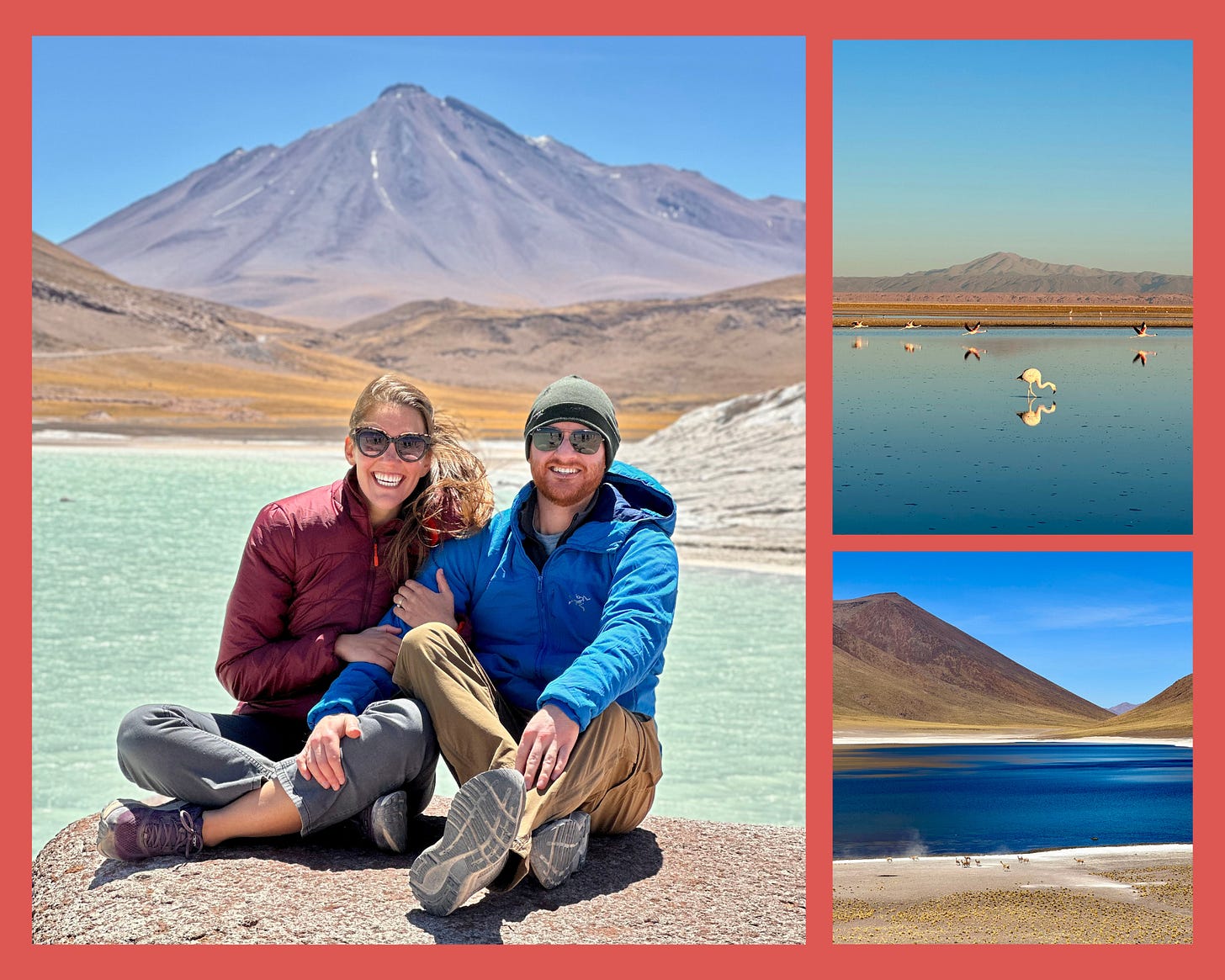 For our final day in San Pedro de Atacama, we hiked up Cerro Toco. To put this hike into perspective, we would reach altitudes higher than Everest base camp! While we had been nervous about acclimatizing correctly in the days leading up to this hike, we both felt fine during the ascent and were the first two to reach the summit at 5,604 meters/18,385 feet—the highest altitude either of us has ever climbed! We were rewarded with panoramic views of the Chilean altiplano, the Laguna Blanca in Bolivia, and the beginnings of the border with Argentina deep in the Andes Mountains. We were, and are, very proud of this accomplishment.